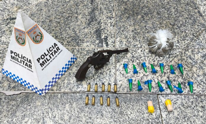 Segundo a Polícia Militar, durante diligências no endereço, a equipe conseguiu deter o suspeito e apreender um revólver calibre .32, 10 munições intactas do mesmo calibre, nove buchas de maconha (aproximadamente 45 gramas) e 16 pinos de cocaína (cerca de 80 gramas). O material estava em posse do acusado no momento da abordagem.