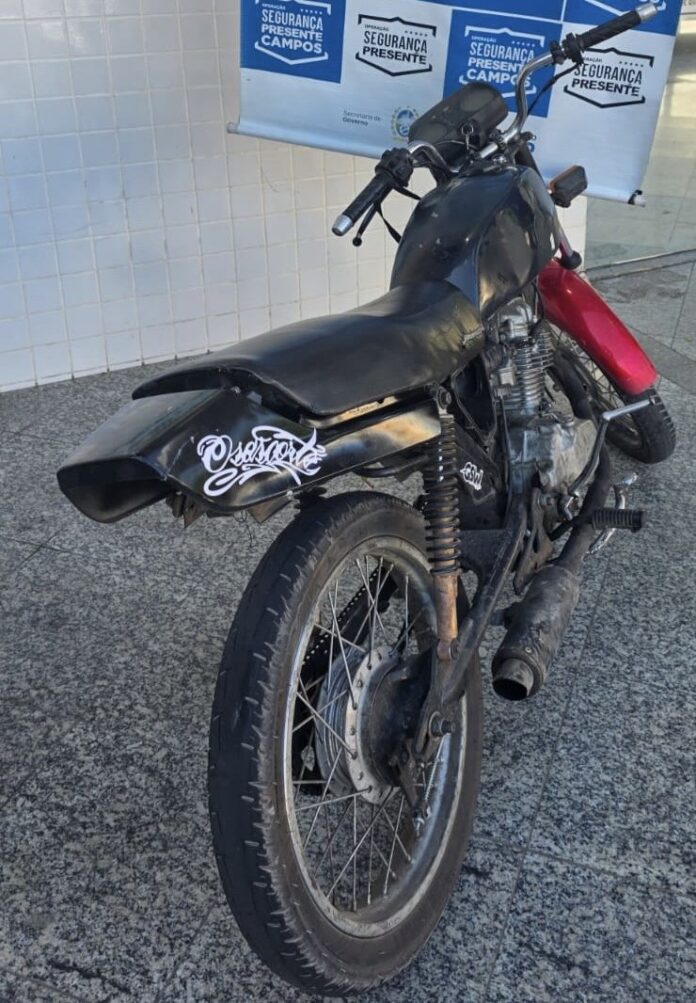 Um adolescente de 16 anos foi flagrado pilotando uma motocicleta sem placa na tarde desse domingo (21), durante patrulhamento da Operação Segurança Presente, no Parque Vicente Dias, em Campos dos Goytacazes.