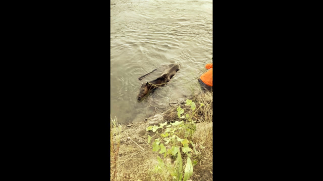Elementos do departamento do Xerife do condado de Fresno, nos Estados Unidos, acompanhados por populares, resgataram um cavalo que tinha caído na água no Kings River.