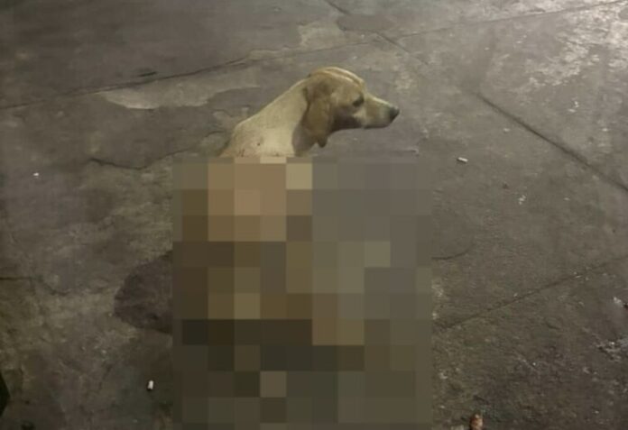 Pessoas que estavam no local realizaram o resgate e encaminharam a cadela para uma clínica veterinária. Apesar dos ferimentos, a princípio, o estado de saúde é considerado estável.