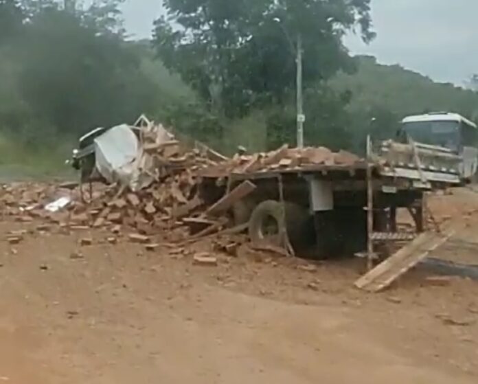 Imagens registradas por testemunhas mostram a carreta tombada na pista e o caminhão com a frente destruída. A rodovia ficou interditada temporariamente devido ao acidente.