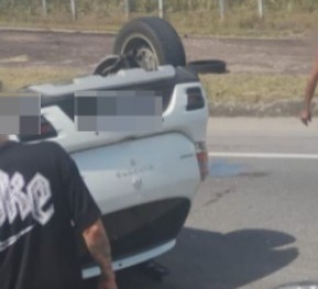 Na tarde desta terça-feira (26), um veículo capotou no km 111 da BR-101, na localidade de Serrinha, em Campos dos Goytacazes. O acidente aconteceu por volta das 12h20, no sentido norte da rodovia.