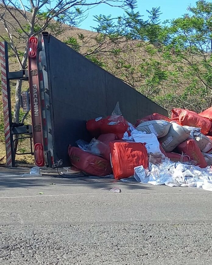 Segundo informações de testemunhas, a colisão ocorreu por volta das 22h55 e envolveu uma carreta carregada de roupas e um caminhão. Com a força do impacto, a carreta saiu da pista, tombou às margens da rodovia e parte da carga se espalhou pelo local.