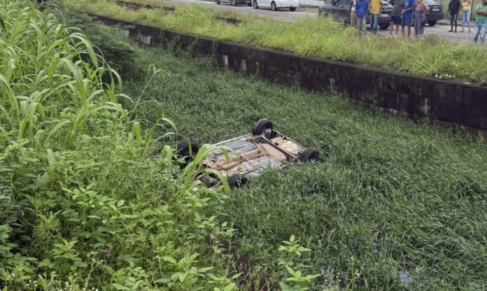 O Corpo de Bombeiros foi acionado por volta das 5h55 com a informação inicial de um capotamento. Ao chegarem ao local, os militares constataram que o veículo havia despencado dentro do valão.