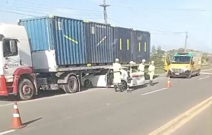 Na manhã desta quarta-feira (29), um acidente entre um carro de passeio e uma carreta foi registrado no km 81 da BR-101, na localidade de Ibitioca, em Campos dos Goytacazes.