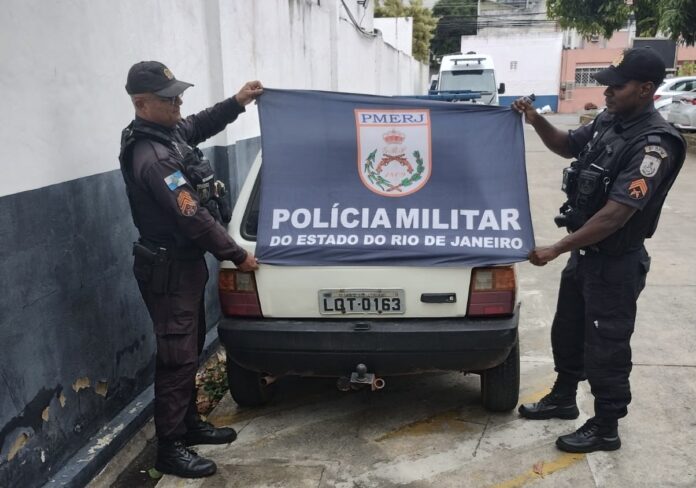 De acordo com o 8º BPM, a equipe realizava patrulhamento quando foi informada por transeuntes sobre um veículo suspeito estacionado na calçada. No local, os policiais encontraram um Fiat Uno branco.