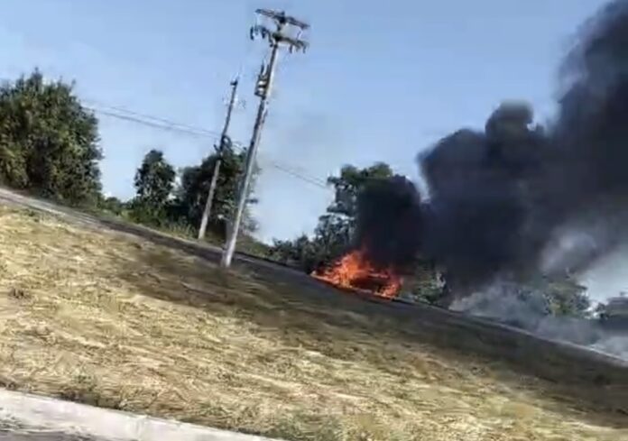 Na tarde desta quarta-feira (4), por volta das 15h10, um carro pegou fogo na BR-356, na altura do trevo de Caetá, em São João da Barra.