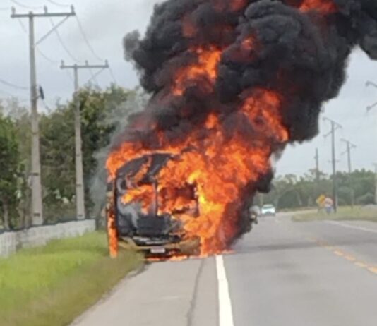 Ônibus fica destruído após pegar fogo na BR-356 em São João da Barra