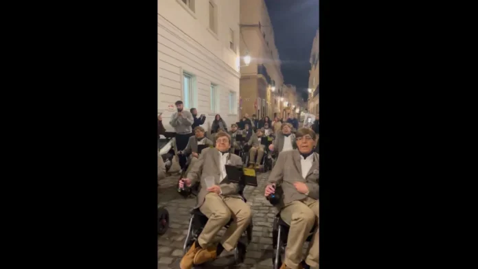 Eles surgiram curvados em suas cadeiras de rodas, com as pernas e a cabeça inclinadas para o lado e uma das mãos segurando o controle para conduzir…
