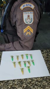 Buscas foram iniciadas e os agentes conseguiram encontrar o suspeito tentando se esconder no quarto da residência. Os policiais conseguiram recuperar a sacola e nela continha 12 pinos de cocaína. Ao ser questionado, o homem assumiu a propriedade da droga assumindo também a atividade de tráfico no local.