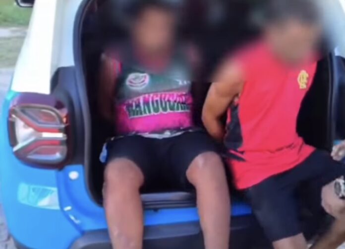 Ao perceberem a aproximação das equipes, os suspeitos tentaram fugir em direção ao terreno, ainda com o material ilícito, mas acabaram cercados e se renderam.