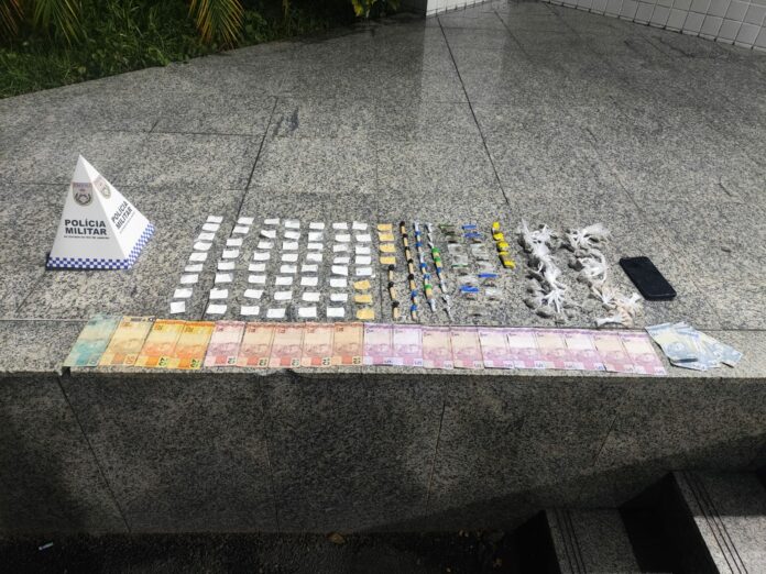 Durante entrada estratégica na área conhecida como Vila do Chaves, dominada por facção criminosa, a equipe policial visualizou dois suspeitos que fugiram em direção à lagoa ao perceberem a aproximação das viatura. Uma parte da guarnição manteve posição próxima à margem. Minutos depois, um homem não identificado chegou ao local chamando pelos suspeitos, que retornaram da vegetação, momento em que as equipes retornaram para nova tentativa de abordagem. Na investida, os dois foram contidos após nova tentativa de fuga. Com o primeiro suspeito foram encontrados R$ 308,00, enquanto com o segundo havia um aparelho celular Motorola, que ele afirmou pertencer ao primeiro acusado e que estaria ali atuando como “vigia” do tráfico. A sacola lançada na lagoa foi localizada e continha 30 pedras de crack, 47 buchas de maconha, 15 papelotes de skank e 88 pinos de cocaína, totalizando cerca de 900 gramas de entorpecentes.