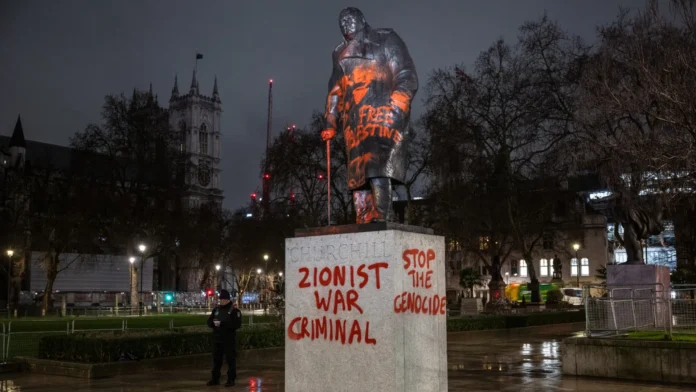 A estátua do ex-primeiro-ministro britânico Winston Churchill na Praça do Parlamento, em Londres, foi vandalizada durante a noite por manifestantes…