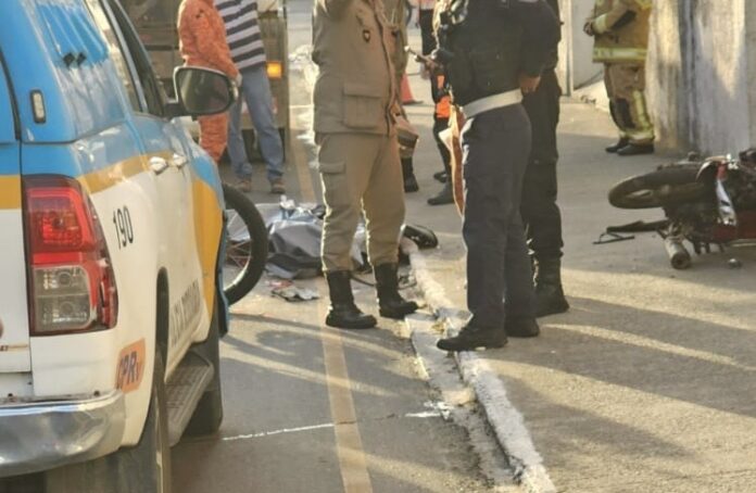 Pai e filha estavam em uma motocicleta atingida por caminhão carregado de concreto; vítima fatal morreu no local e homem de 73 anos foi socorrido ao HFM