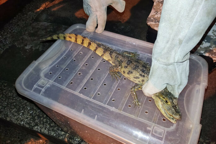 O Grupamento Ambiental (GAM) da Guarda Civil Municipal (GCM) resgatou um filhote de Jacaré-de-papo-amarelo, no Parque Presidente Vargas, nesta sexta-feira (16). O animal, com aproximadamente 50 cm, apareceu em frente a uma residência. Uma moradora acionou o grupamento para o resgate na região, totalmente urbana e sem nenhum fator atrativo para espécie. Segundo os agentes do GAM, o jacaré pode ter vindo da Lagoa do Vigário.