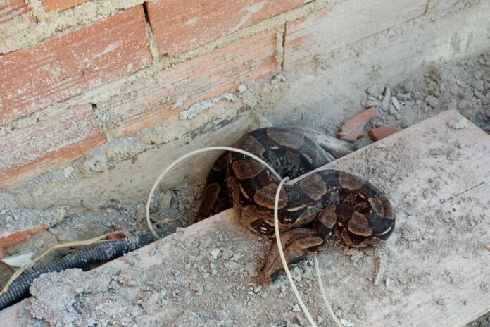 O Grupamento Ambiental (GAM), da Guarda Civil Municipal (GCM), resgatou mais uma cobra jiboia, nesta segunda-feira (19), em uma residência em fase de construção no Parque Veredas. O animal apresentou aspecto físico saudável e estava em meio aos materiais de construção.