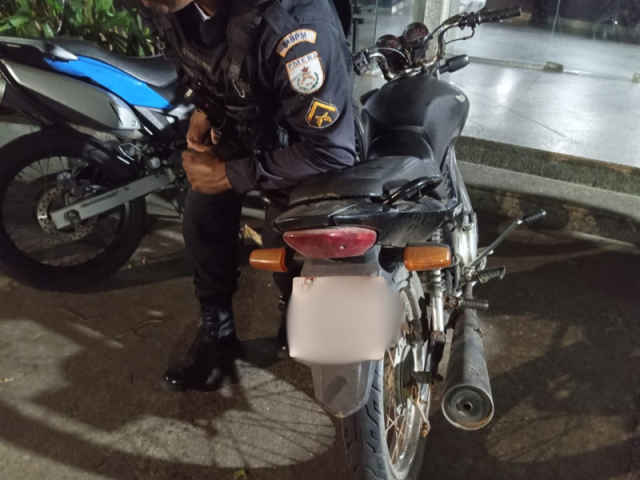 Os policiais abordaram o suspeito que estava em uma moto, e após consulta, foi constatado que o veículo era proveniente de roubo no dia 30 de março deste ano.