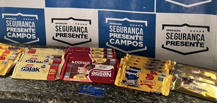 Segundo informações dos agentes da Operação Segurança Presente, dois funcionários do estabelecimento detiveram o suspeito, identificado como L.L.C., de 30 anos, enquanto tentava furtar produtos. A polícia chegou ao local e encontrou 30 barras de chocolate e um cartão de banco em nome de outra pessoa.