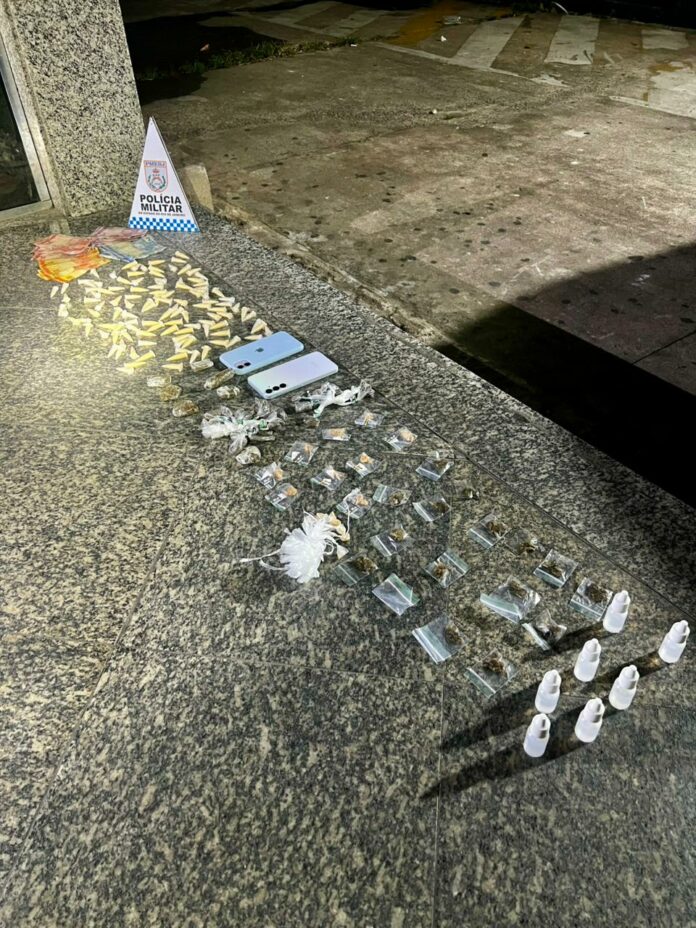 Segundo informações da guarnição, durante o policiamento foram encontrados diversas drogas e aparelhos celulares em posse do acusado. Após contabilização, foram apreendidos 120 pinos de cocaína, 23 buchas de maconha, 18 pedras de crack, 17 buchas de skank, 7 frascos de loló, além de R$ 116,00 em espécie e dois celulares. O suspeito e todo o material recolhido foram encaminhados para a unidade policial.