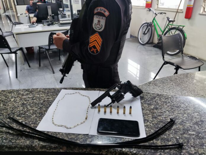 Após uma vítima de roubo solicitar ajuda, os policiais iniciaram as buscas e conseguiram encontrar os dois suspeitos em um veículo, na Rua Osvaldo Lima com José Carlos Pereira Pinto, no Parque Calabouço. Com eles, foram encontrados o cordão banhado a ouro que havia sido roubado, 1 revólver com 6 munições, além de 3 abraçadeiras e um celular.