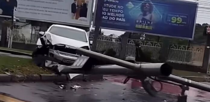 Na manhã de domingo (19), um idoso ficou ferido após colidir o carro que dirigia contra a estrutura de um semáforo no cruzamento da Avenida 28 de Março com a Rua Doutor Felipe Uebe, no bairro Turf, em Campos dos Goytacazes, no Norte Fluminense.