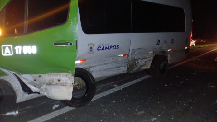 Na noite desta quarta-feira (7), equipes do Corpo de Bombeiros foram acionadas para atender a um acidente de trânsito na RJ-216, nas proximidades de Santo Amaro, na Baixada Campista. A ocorrência envolveu uma van e um carro, por volta das 19h41.