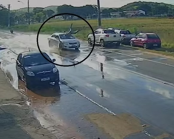 Imagens de câmeras de segurança registraram o momento em que Delmo atravessava parte da rodovia quando foi atingido pelo carro. Ele sofreu ferimentos graves após ser lançado ao chão.