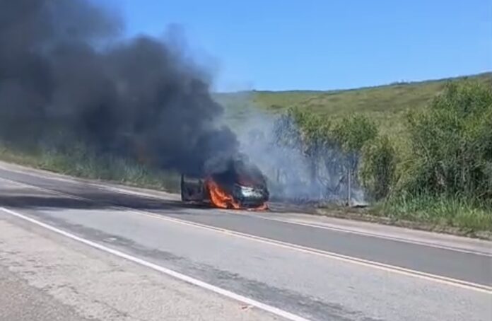 O fogo atingiu um automóvel e, apesar do susto, não houve registro de vítimas. Para o atendimento da ocorrência, a pista precisou ser interditada nos dois sentidos, provocando congestionamento de cerca de três quilômetros em cada direção.