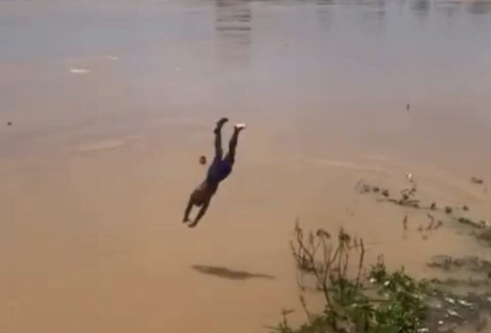 Uma cena inusitada chamou a atenção de quem passava pelo Centro de Campos dos Goytacazes na tarde desta terça-feira (10). Dois jovens foram flagrados pulando da laje do banheiro público do terminal rodoviário em direção ao Rio Paraíba do Sul, aproveitando a elevação do nível da água.