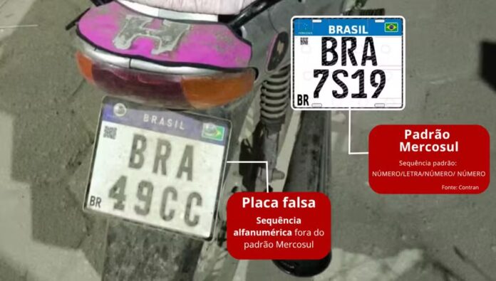 Uma placa com a sequência alfanumérica BRA 49CC, vendida como item decorativo em diversas plataformas na internet, está sendo usada por motociclistas para tentar enganar a fiscalização em diversas cidades do país.