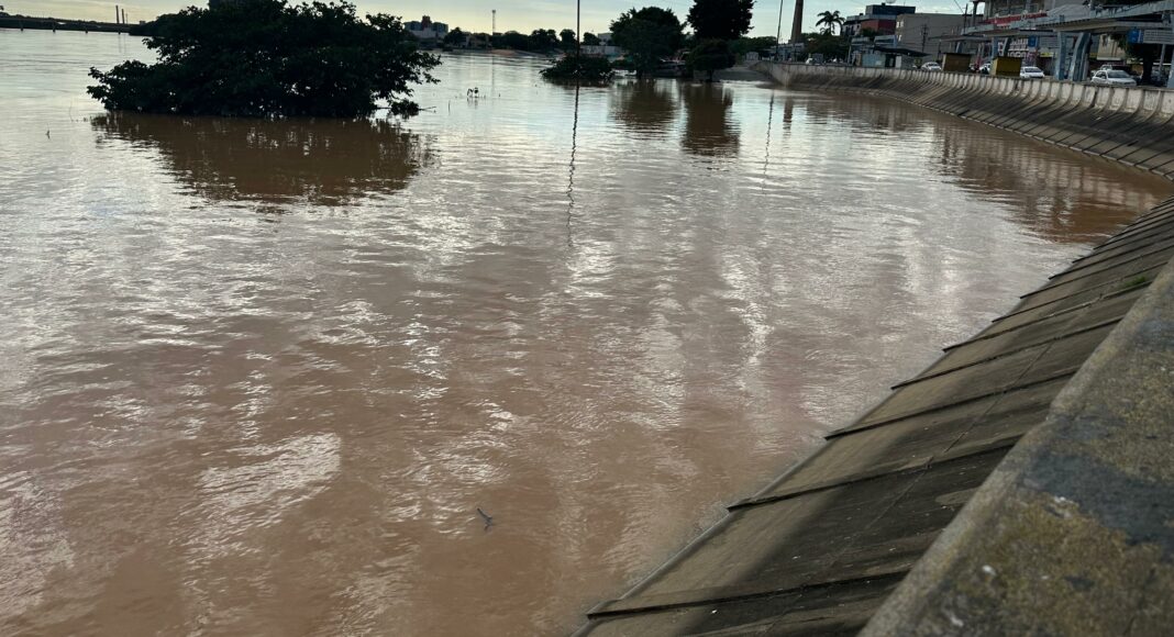 No sábado (28), a elevação do rio provocou danos na estrutura de um dos pilares da Ponte Barcelos Martins, que precisou ser interditada.