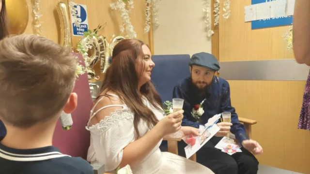 Hollie apressou-se em comprar duas alianças e um vestido branco e foi no quarto do Royal Stoke Hospital, onde o homem estava internado, que decidiram casar na presença dos dois filhos que têm em comum