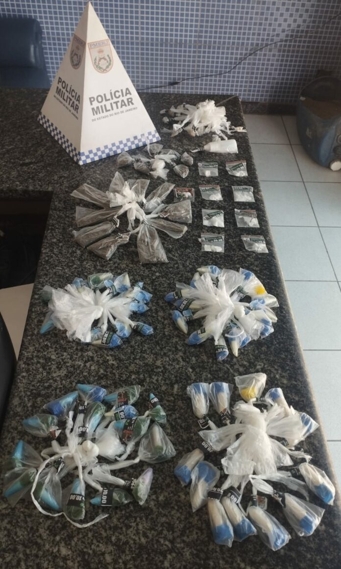 Durante uma ação de intensificação do patrulhamento, policiais militares do 8º BPM apreenderam diversos materiais entorpecentes, na tarde desta quarta-feira (15), na Avenida Dario Canela Tavares, em Goitacazes, na Baixada Campista.