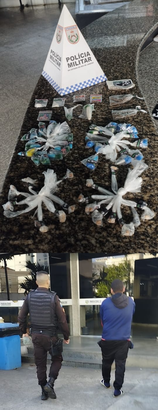 Policiais militares da 1ª Companhia do 8º BPM, apreenderam material entorpecente e detiveram um adolescente durante uma operação de combate ao tráfico de drogas, na Avenida Dário Canela Tavares, esquina com a Rua João de Carvalho, em Goitacazes, distrito de Campos, na manhã desta quinta-feira (16).