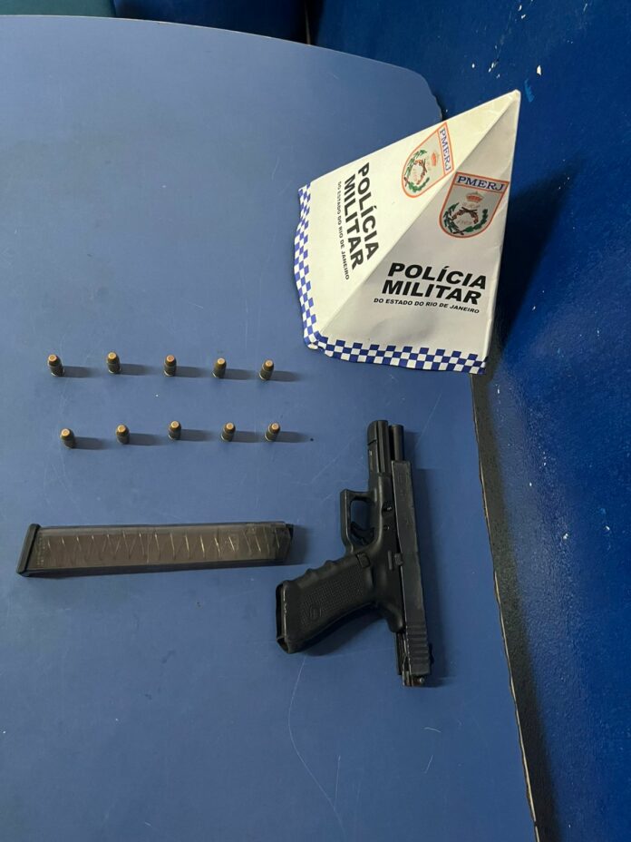 Durante incursão tática na localidade, conhecida por registros de confrontos armados e tráfico de drogas, os policiais identificaram uma residência com sinais de abandono. Durante a varredura no quintal do imóvel, as guarnições encontraram uma caixa térmica que, ao ser inspecionada, continha uma pistola Glock calibre .40 com numeração suprimida, equipada com kit rajada e carregada com 10 munições intactas do mesmo calibre.