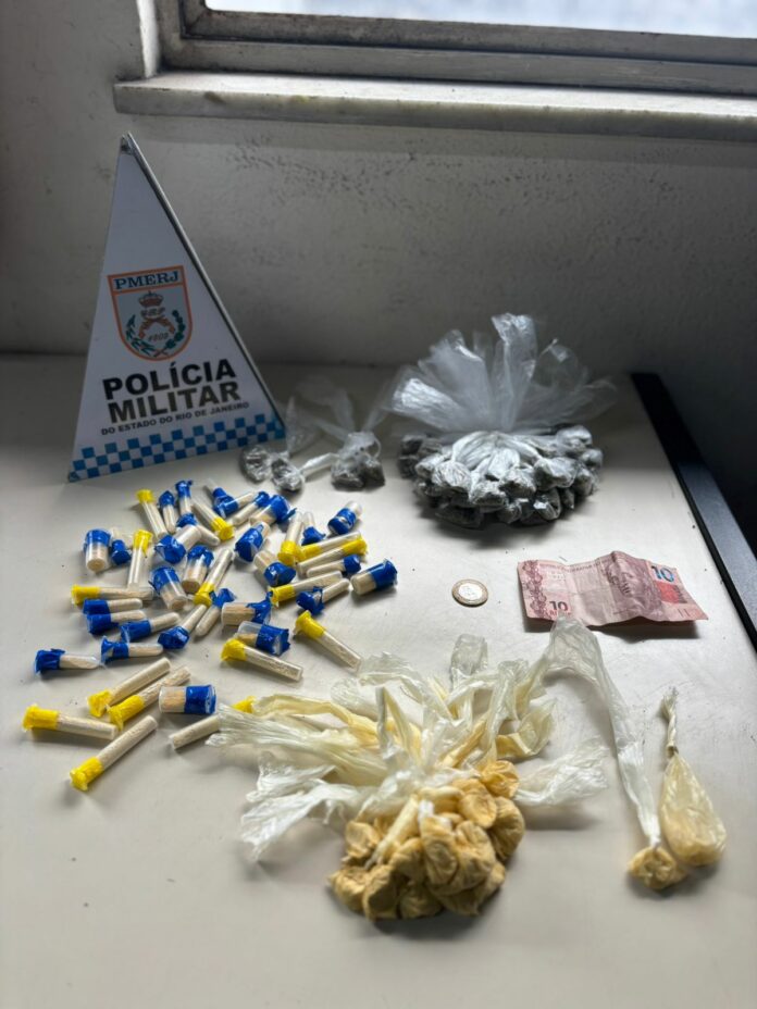 A apreensão ocorreu após policiais, em patrulhamento pela Avenida Ruy Barbosa, nas proximidades da comunidade Tira Gosto, visualizarem dois suspeitos que fugiram ao perceber a aproximação das viaturas. Um deles arremessou duas sacolas às margens da beira-rio, onde, após varredura, foram encontrados 20 sacolés de pó branco aparentando cocaína, 37 pinos do mesmo material, 51 buchas de erva seca semelhante à maconha e R$ 11 em espécie.
