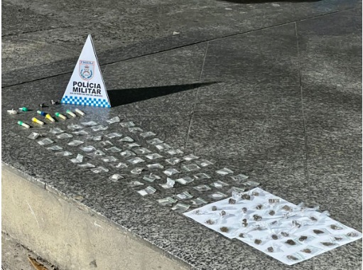 Durante a varredura no terreno, os agentes encontraram, sob entulhos, uma quantidade significativa de drogas: 60 papelotes de metanfetamina, 35 buchas de maconha e 11 pinos de cocaína. Todo o material foi recolhido e apresentado na 134ª DP/Centro, onde a ocorrência foi registrada.