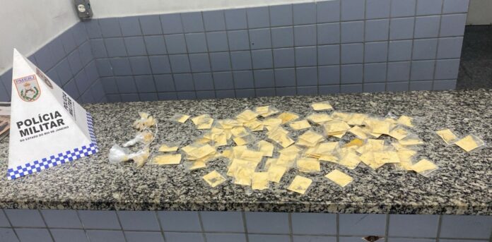 Segundo a corporação, durante buscas em um ponto conhecido pelo tráfico de drogas, os agentes encontraram uma caixa de papelão contendo 114 papelotes de cocaína e 26 pedras de crack. O material estava embalado e pronto para ser distribuído.