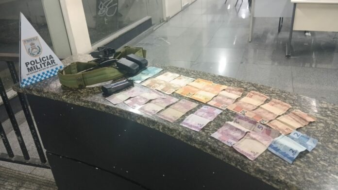 Durante o patrulhamento, as guarnições observaram cinco homens em frente a uma residência identificada como ponto de venda de drogas. Um dos suspeitos correu para o interior do imóvel segurando um objeto na cintura, sendo posteriormente abordado, com ele, foi encontrada apenas a quantia de R$ 240,00. Os demais suspeitos foram questionados, e um deles, afirmou ser morador do local, autorizando a revista domiciliar. Na inspeção, foram localizados R$ 77,00 em espécie e materiais táticos, como um cinto tático, um carregador de pistola, um porta-carregador e um coldre de pistola.