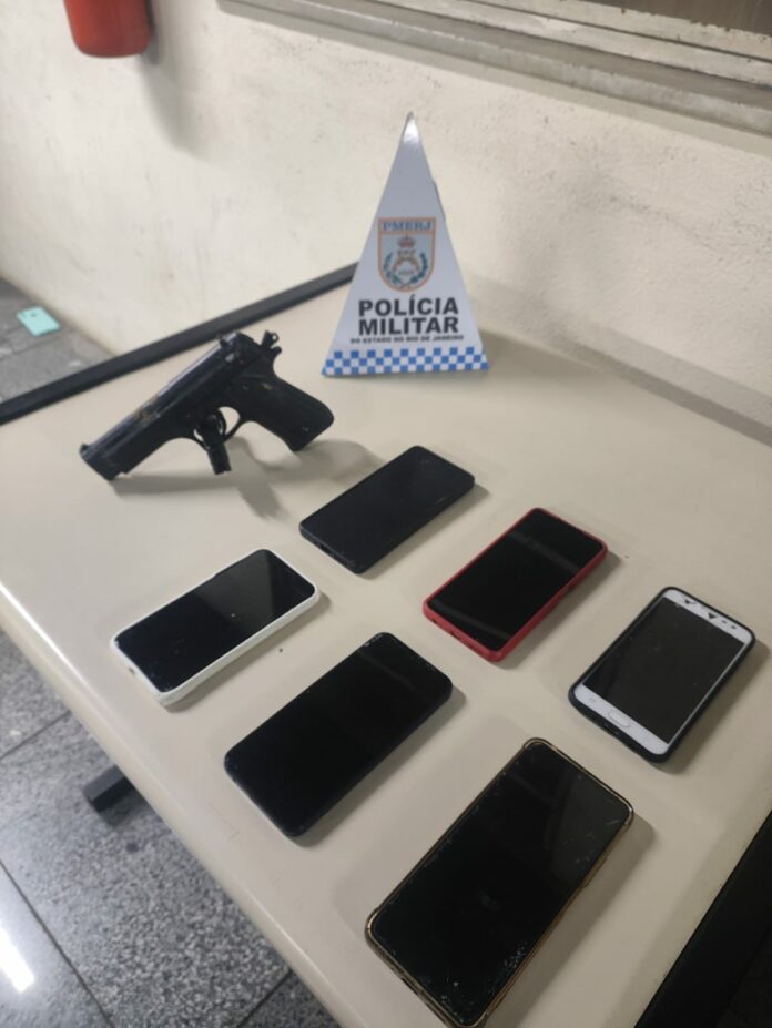 Com o detido, foram apreendidos seis aparelhos celulares, identificados posteriormente como produtos de furto. Nas buscas pelos locais por onde ele havia passado, a equipe também encontrou a calça usada na ação e um simulacro de pistola utilizado nos crimes. O homem confessou ter cometido diversos assaltos naquela noite e foi reconhecido por quatro vítimas que compareceram à delegacia para formalizar denúncia.