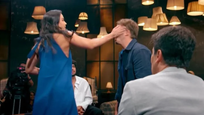 A lutadora Kyra Gracie deu um tapa no rosto de Fábio Porchat enquanto contava sua história no programa Que História É Essa, Porchat?, do GNT.