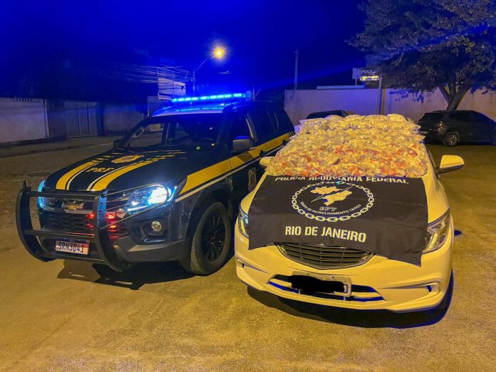 No veículo, além do condutor, encontrava-se um passageiro no banco dianteiro direito. Durante a inspeção dos itens obrigatórios do carro, os policiais avistaram duas sacolas pretas grandes no porta-malas. Questionados sobre o conteúdo, os ocupantes admitiram que transportavam drogas e que o destino era o município de Macaé.