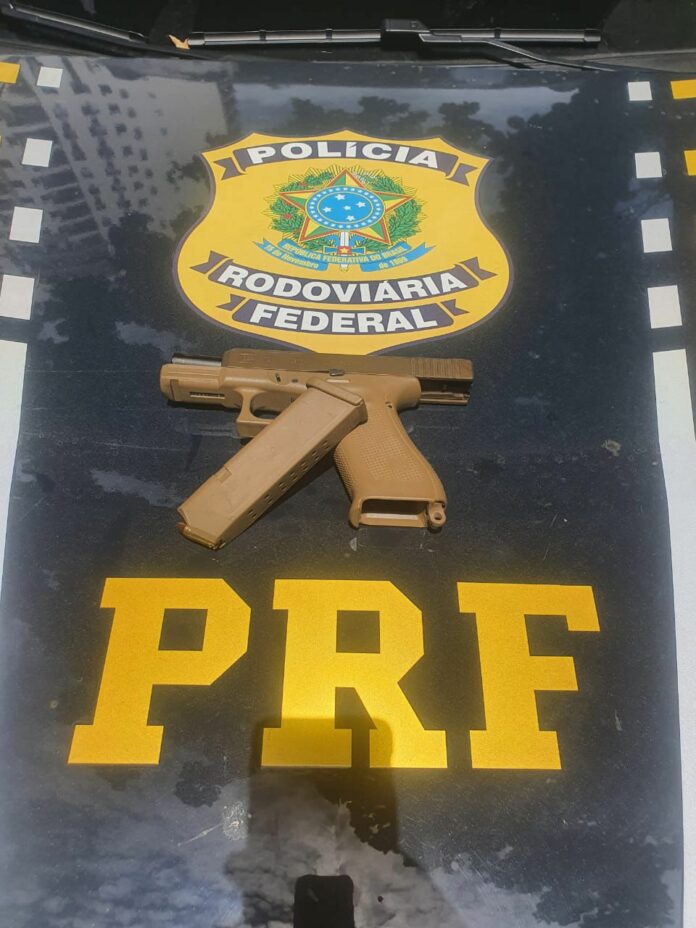 Durante a abordagem, os agentes notaram um volume suspeito na cintura do condutor, que foi questionado sobre a posse de arma de fogo e a documentação necessária. O homem apresentou um documento de porte de arma em seu nome, que correspondia a uma pistola Glock calibre 9mm e um carregador com 17 munições intactas.
