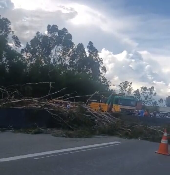 Na tarde desta quarta-feira (10) no trecho do KM 104 da BR-101, entre as localidades de Caxeta e Serrinha em Campos, uma queda de árvore resultou na interdição completa da pista no sentido Rio de Janeiro.