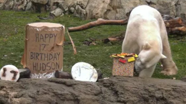 O Jardim Zoológico de Illinois, nos Estados Unidos, preparou uma festa surpresa para o urso polar Hudson, que completou 17 anos na quinta-feira (15).