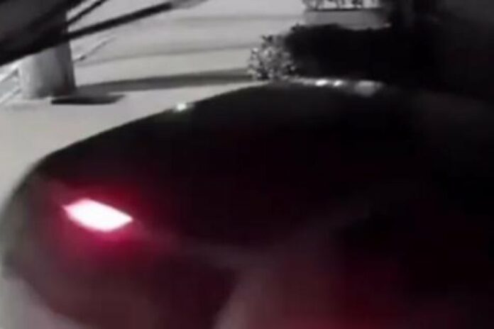 Nas imagens, é possível vê o veículo em alta velocidade subindo na calçada, arrastando os vasos de plantas e colidindo contra uma coluna de sustentação da fachada. Após a colisão, o condutor do veículo, deu ré e fugiu.