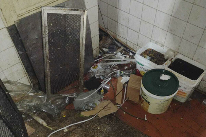 No local foram encontradas várias irregularidades e condições higiênicas sanitárias inadequadas na cozinha, banheiro e depósitos, além de produtos com validade vencida