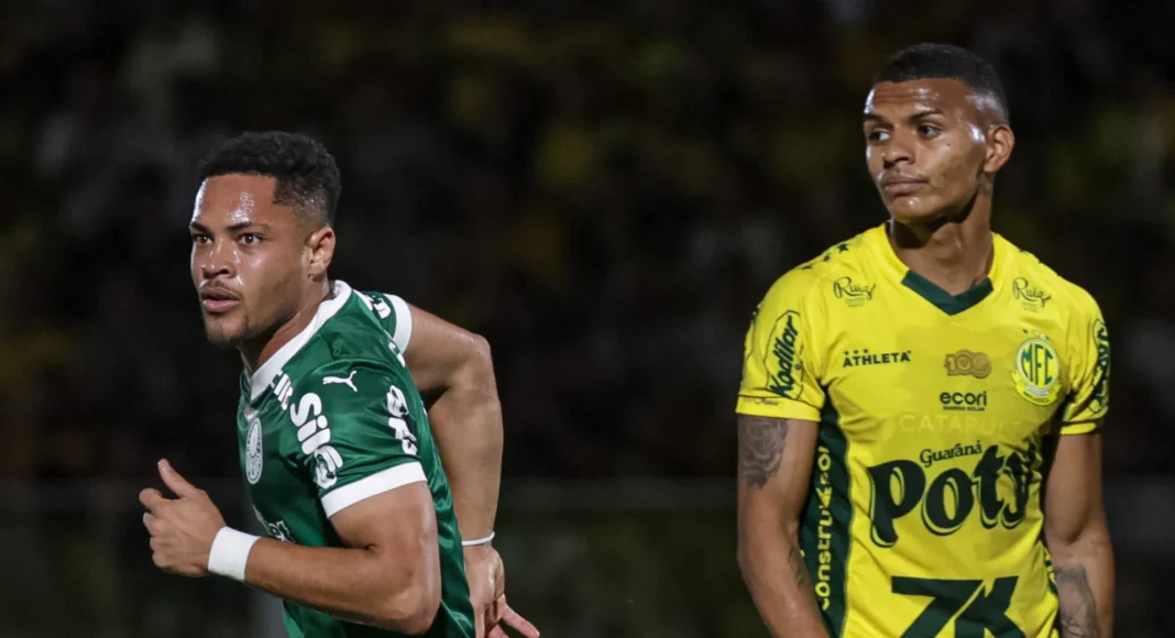 Vitor Roque faz de bicicleta, mas Mirassol vence Palmeiras e ajuda Flamengo